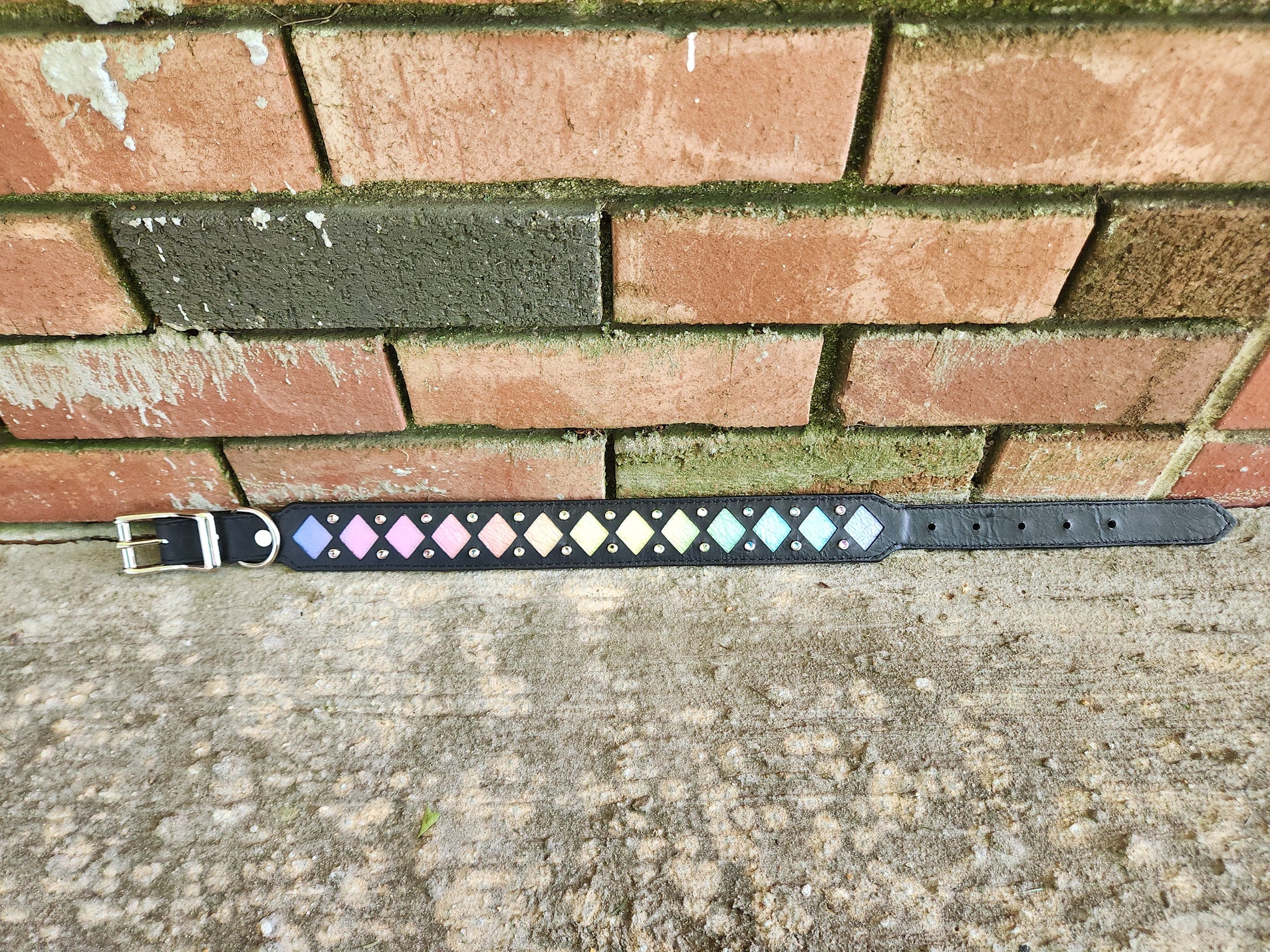 Pastel Rainbow Diamond Leather Collar