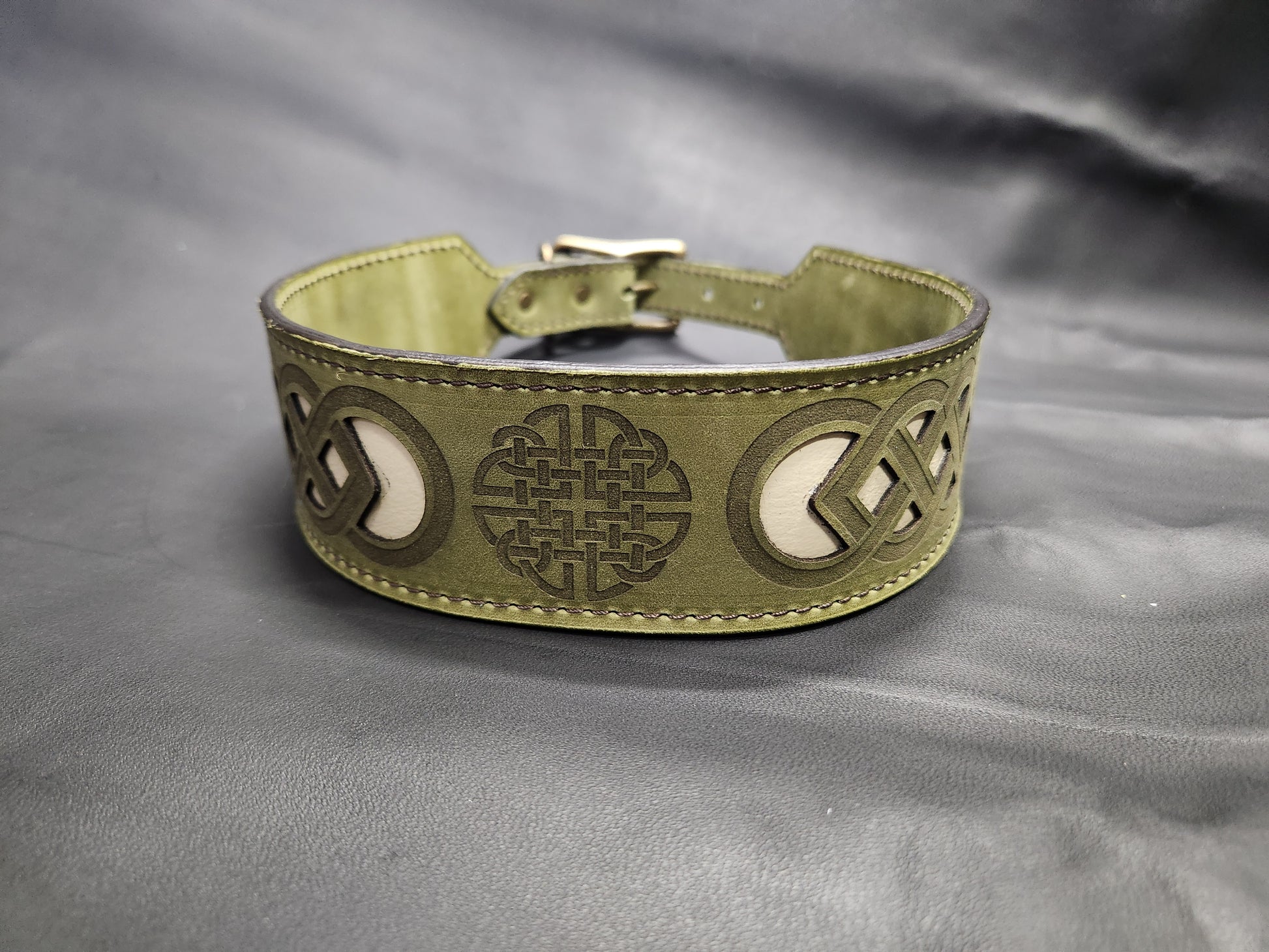 Green Leather Dog Collar with Celtic Design